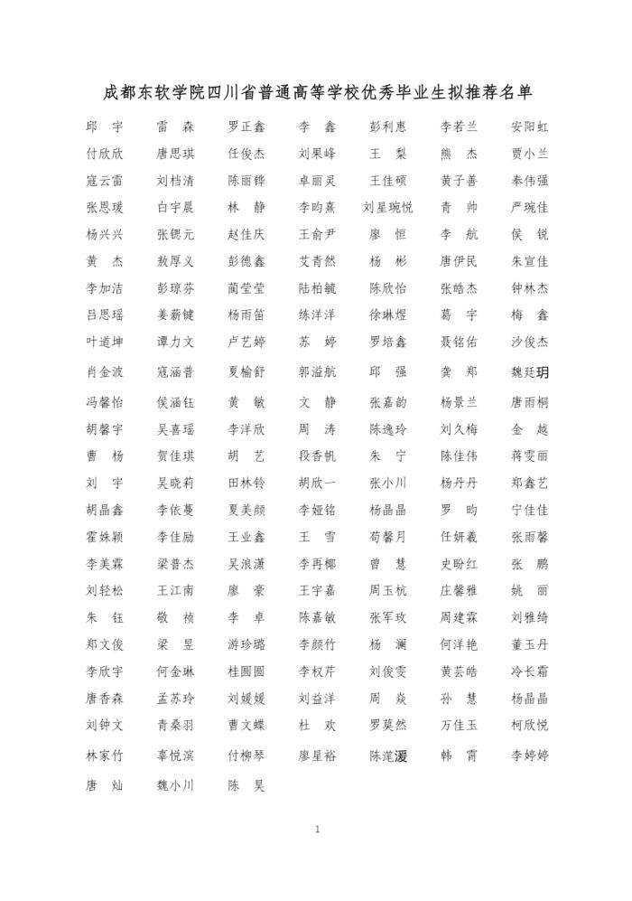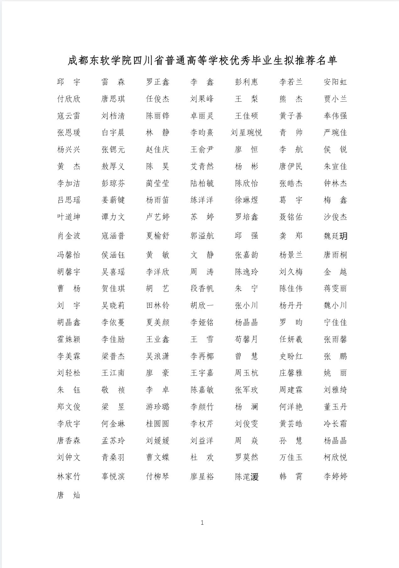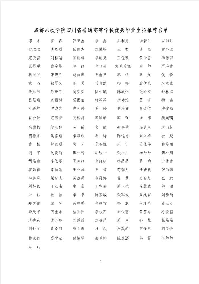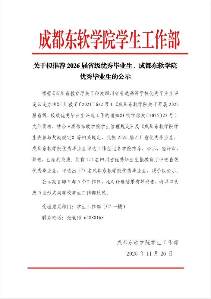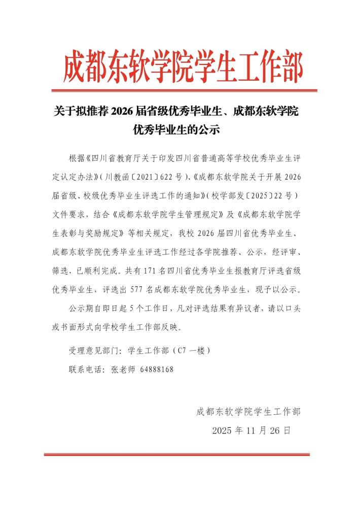 关于拟推荐 2026 届省级优秀毕业生、成都东软学院优秀毕业生的公示