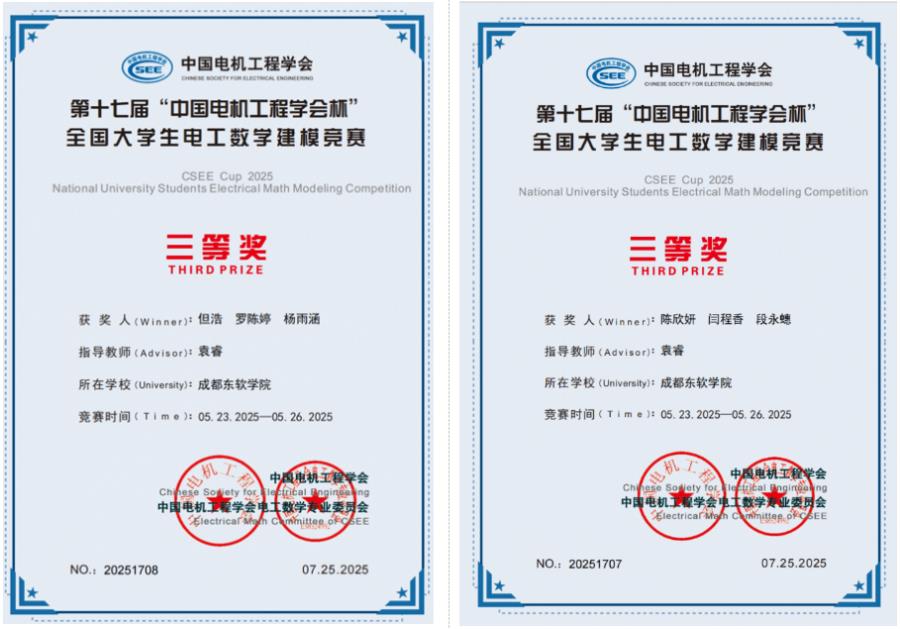 近日,2025年全国大学生电工数学建模竞赛圆满落幕。我校计算机与软件学院学生团队在跨学科领域再获突破,荣获全国二等奖2项、三等奖2项,创下我校在该赛事中的最新纪录。
