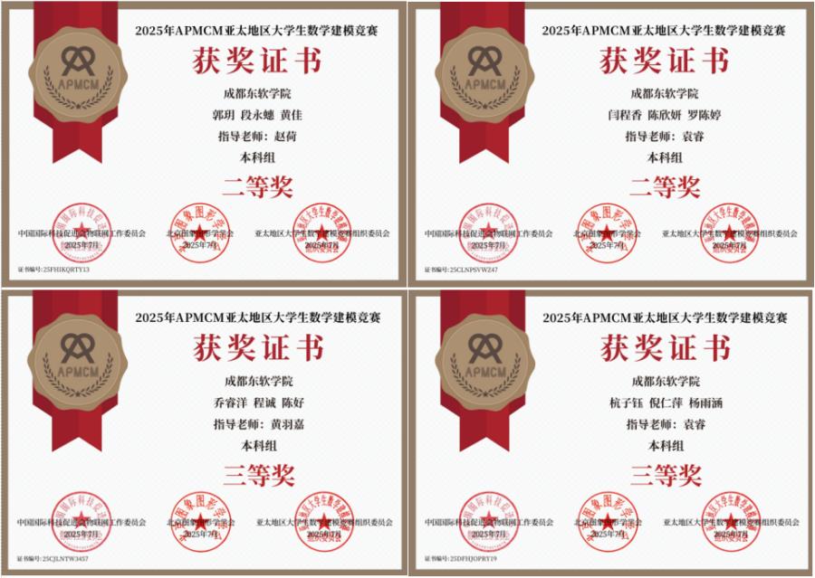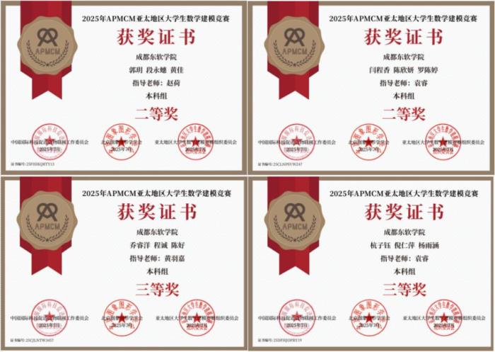 近日,第十五届亚太地区大学生数学建模竞赛中文赛项(APMCM)圆满落幕。我校计算机与软件学院学子以扎实的专业基础和创新实践能力,在来自全国690所高校的2550支参赛队伍中脱颖而出斩获二等奖2项、三等奖2项。